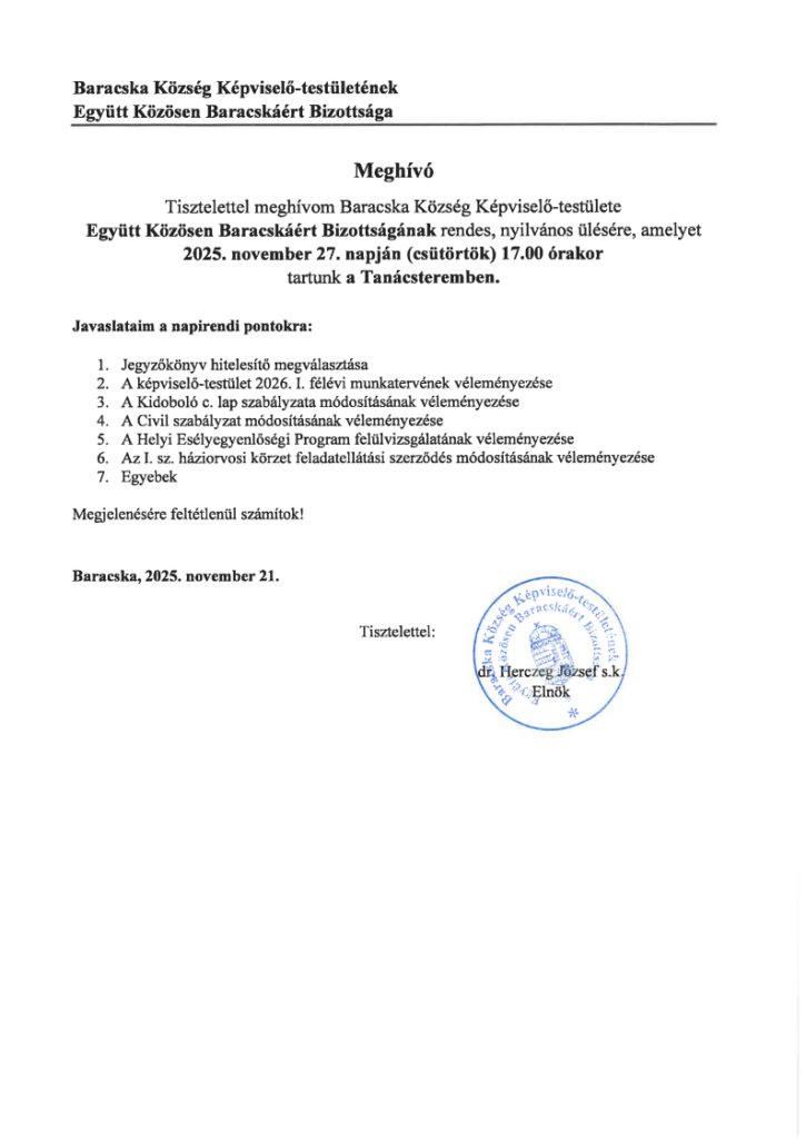 EKBB ülés 2025. november 27. 17:00 Tanácsterem.